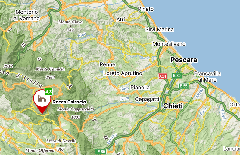 Pevnost, která se tyčí 1500 metrů nad mořem, dominuje krajině, kam až oko dohlédne. Je to jedna z nejunikátnějších středověkých pevností v Abruzzu díky své struktuře, která je v regionu neobvyklá, protože pochází z cizí tradice. V údolí se nachází malý kostel Santa Maria della Pietà (14. století), který je pozoruhodný svou jednoduchostí: jeho vnější tvar je osmiboký.áš text začíná právě zde. Klikněte a můžete začít psát.